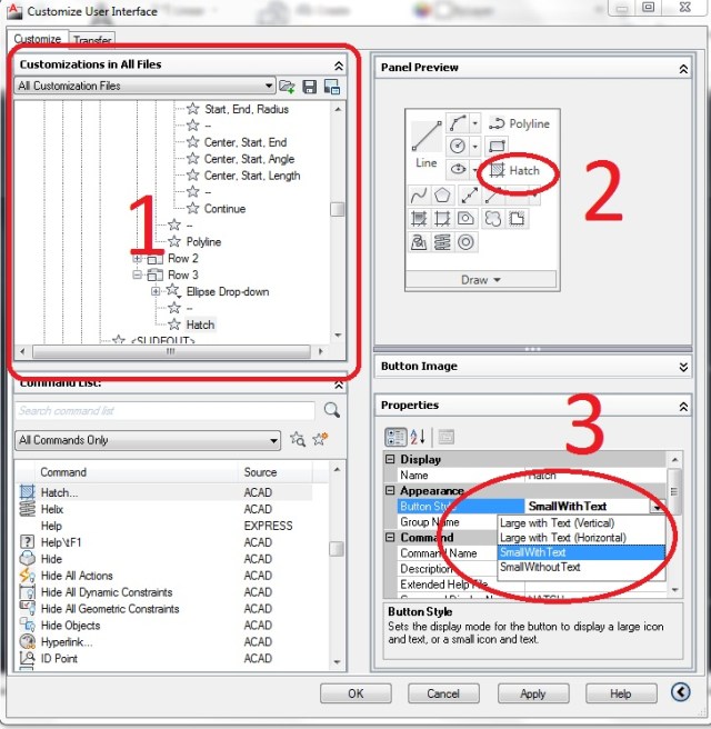 In this Blog post, I am not going to show how to create a new ribbon or panel (I will save that for its own post) but I will show you how to alter buttons in the panel to have a text label show next to the button.