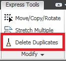 • Or on the Ribbon: Express Tools > Modify panel > “Delete Duplicates” button