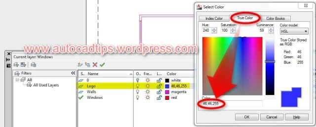 Anytime you specify a color to an entire layer, individual object(s) or a viewport override, you have the option of using 3 color categories. One of which is called “True Color.” (This is similar to specifying material colors in 3Ds MAX)