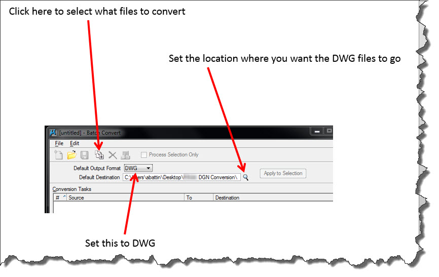 - What file type you want the DGN to be convert to (in this case – “DWG”)